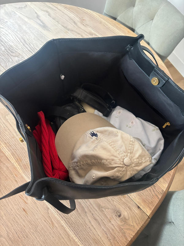 - ⚠️ Note importante : un trieur rigide format 24 × 32 cm rentre à l’intérieur grâce à l’ouverture large, mais il s’ajuste de justesse à la base. La fermeture reste possible, mais serrée si le trieur est épais